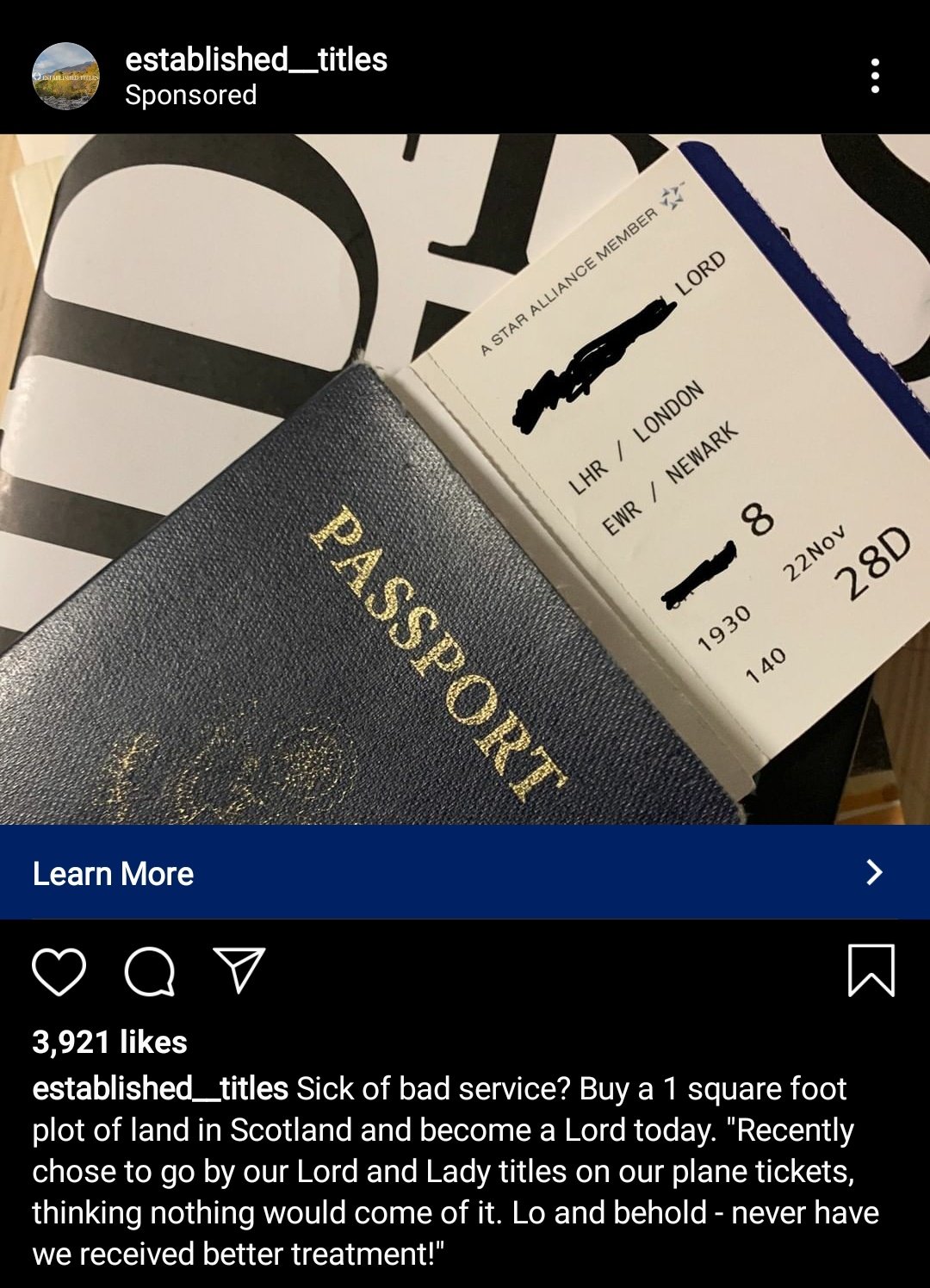 تويتر Vinay Aravind على تويتر According To This Instagram Ad You Can Buy A Square Foot Of Land In Scotland And Become A Lord Lady And Then Use Those Titles In Your